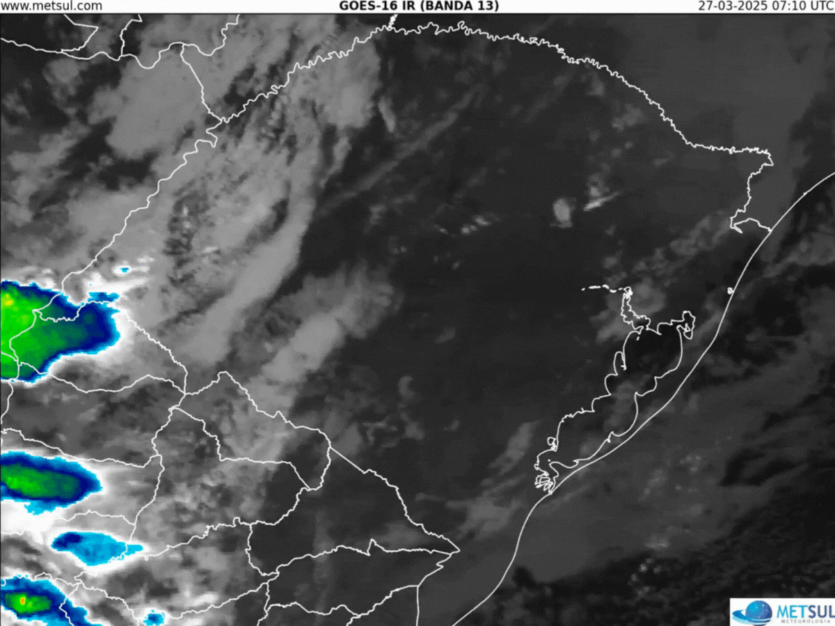 Nuvens carregadas devem se formar ao longo da tarde nas divisas com o Paraguai, a Argentina e Santa Catarina. No período da noite, essas instabilidades avançam para o Centro-Sul, Oeste e Noroeste do Estado, com risco de temporais localizados e ocorrência de raios.